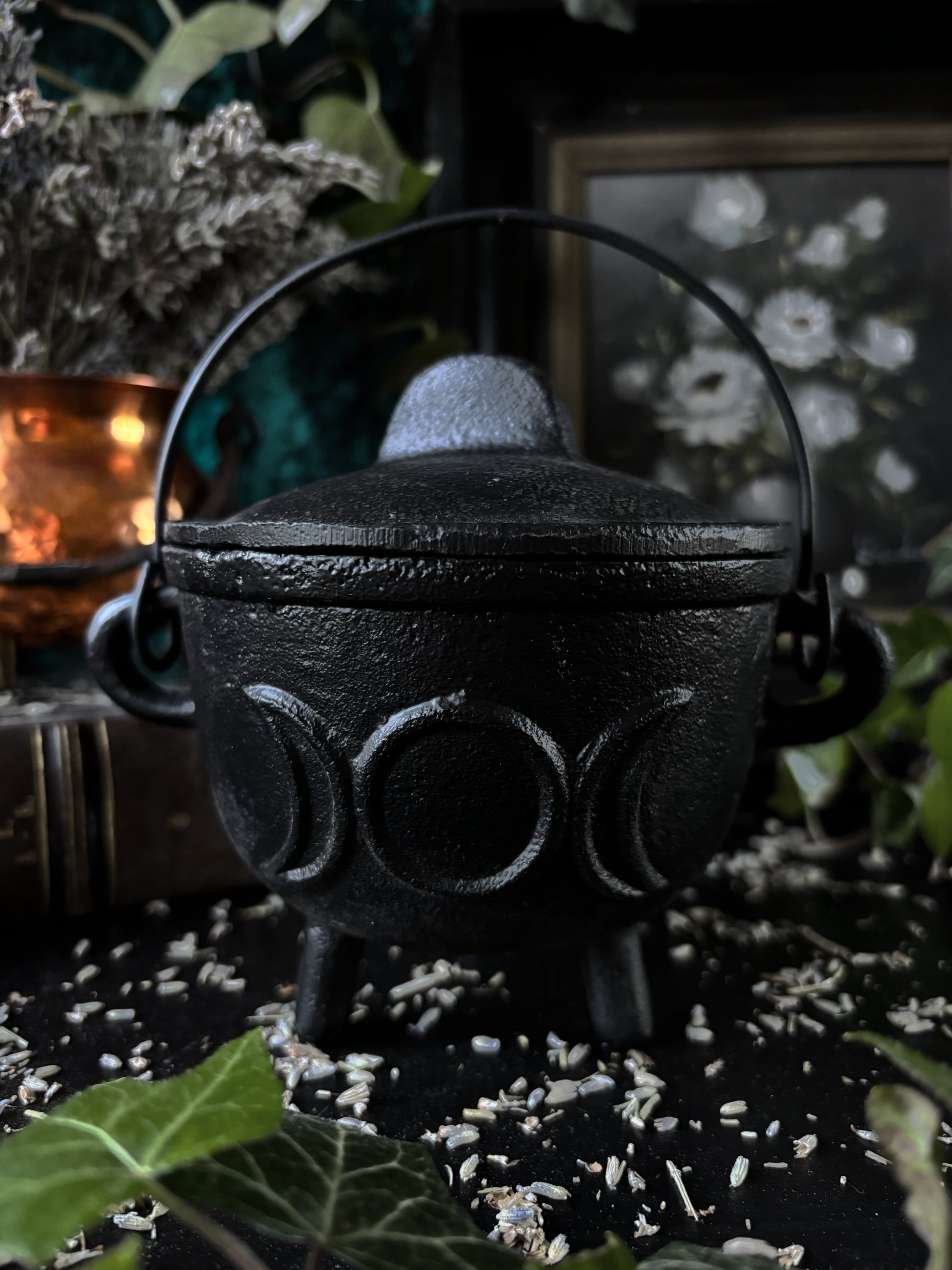 Invoke the energies of the lunar phases with the substantial 11x13cm Cast Iron Cauldron, graced by the Triple Moon. This cauldron effortlessly combines elegance and spirituality, making it a centerpiece of any ritual.