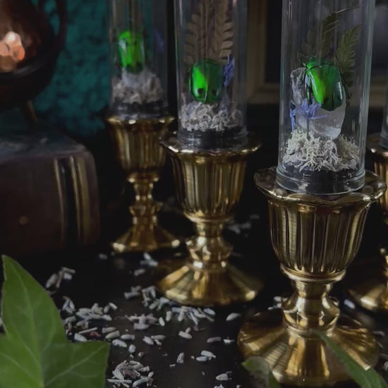 Glass dome with brass stand - Heterorrhina Sexmaculata