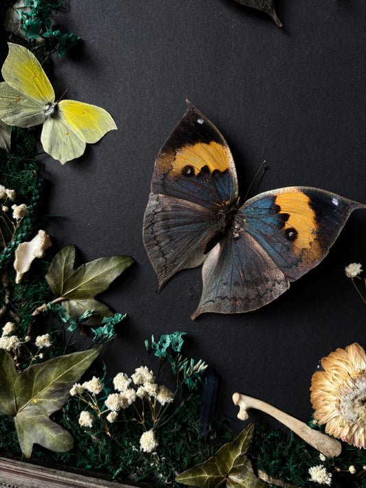 Aus echten Präparaten und sorgfältig arrangierten Naturmaterialien entsteht ein Objekt zwischen Kunst und Momentaufnahme.